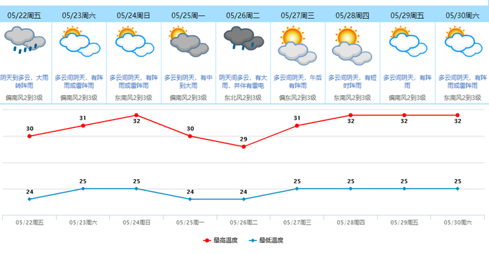 23-24日降雨减弱,有阵雨或雷阵雨;