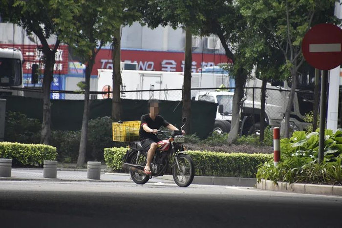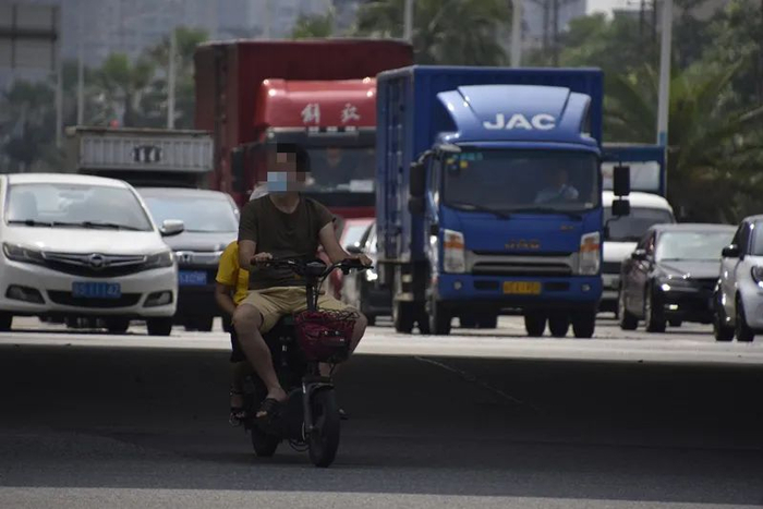 不戴头盔骑电动自行车的男子