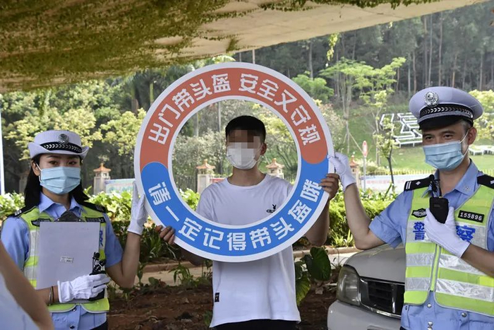 并劝其承诺骑车出门带头盔