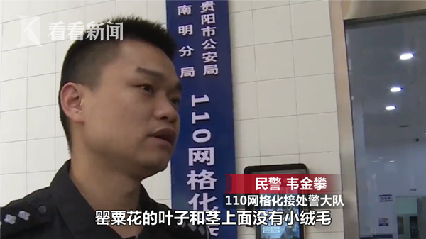 贵阳市公安局南明分局110网格化接处警大队民警韦金攀说:“虞美人的花多是五颜六色的,罂粟花主要颜色是红色为主,这是第一个区别;第二个区别是,如果你仔细观察的话,虞美人的叶子以及茎上面有一些小绒毛,罂粟花的叶子和茎上面没有小绒毛,比较光滑。”