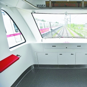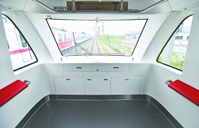 全自动无人驾驶地铁列车正式投入使用后,车头的驾驶室操作台将隐藏在车厢内部,乘客可以在“驾驶位”透过玻璃看到车前的情形 记者李永刚 摄