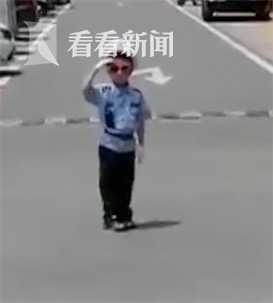 小家伙,身穿一身迷你警服,有么有样地在指挥交通,就是这个小家伙在各大短视频平台上火了。