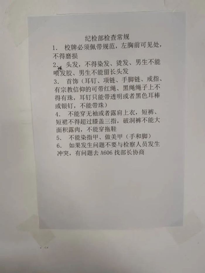 “学校本身管的就多,尤其到了夏天,更会严查学生的着装。不符合要求的都要领过失单,三张过失单就会给与一个处分”,小雪介绍。此外,绑头发的女生不得把带有装饰的头绳放在手腕上,也不得佩戴任何装饰性首饰。