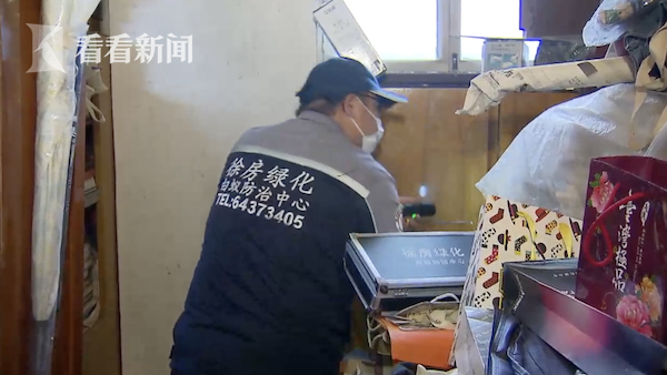 灭蚁过程中,防治人员火眼金睛,对缝隙、天花板等容易滋生的部位尤为仔细。对于地板下活动的蚁群,他们用手电筒对准查看,预判找准位置,然后用工具凿开,再灌入药物,予以查杀。对于曹女士家的情况,防治人员也开出了“药方”。