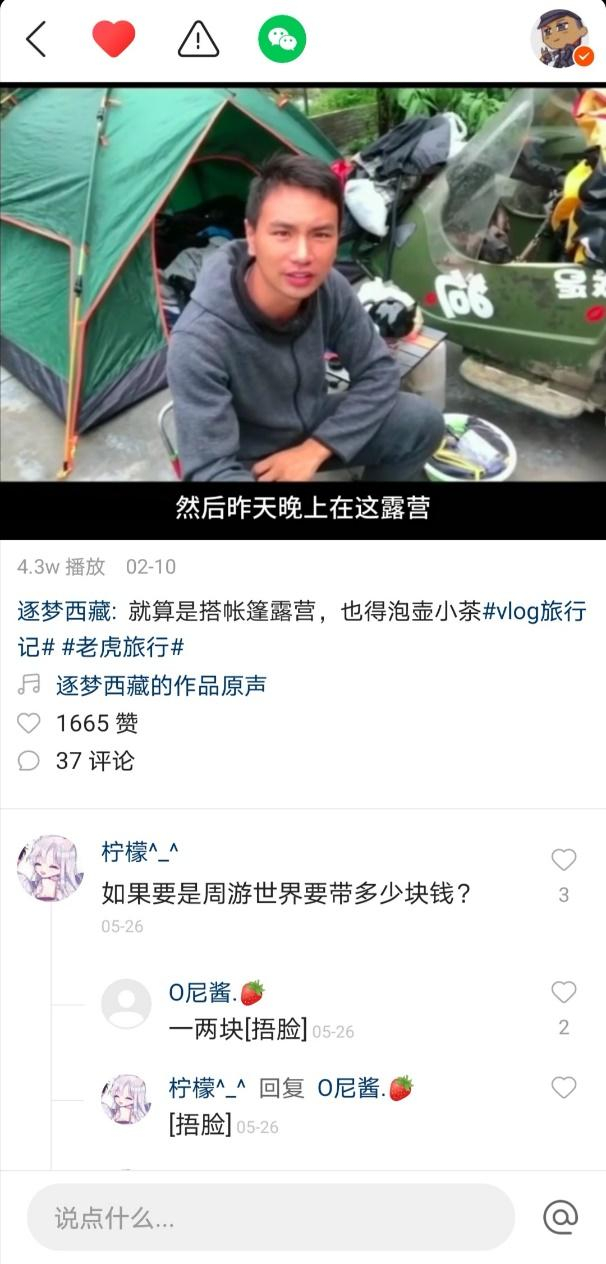 在华山吓到腿软的台阶,在云南走过最长的路,在西藏看过最蓝的天。。。。。。视频中还保留着一起在北京的回忆,雷家虎和“朋友”的旅行故事正在快手讲述。