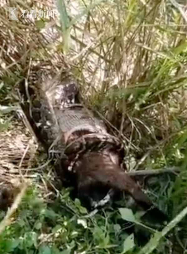 原标题:视频|视频骇人!3米长蟒蛇吞下半只羊…身体都变形了