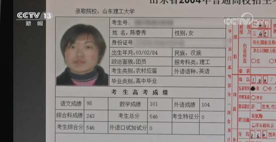 在网络还不发达的2004年,陈春秀没再追问自己的录取情况,而在16年后,她却发现自己的学籍上是另外一个女孩。在向山东理工大学询问后,招生办老师经过家访,告知了一个令她无法接受的消息,当年她其实被学校的专科录取了,通知书也寄出了,而她之所以没收到,是因为被冒名顶替了。