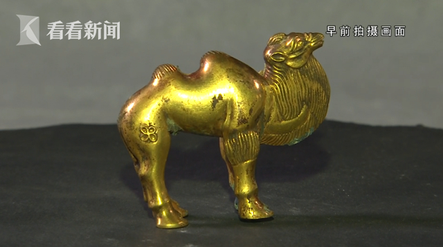 截止目前,考古人员在墓葬内发现大量陶器、铜器、玉器及少量金银器、铁器等。包括鼎、豆、壶等青铜礼器,以及带有“乐府”铭文的青铜配件和数千枚半两铜钱等,中心棺椁还在进一步的清理当中。在墓葬南侧,考古人员还发现了金银骆驼、金舞袖俑等随葬品。这些金银质地的陪葬品多为首次面世。