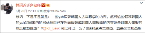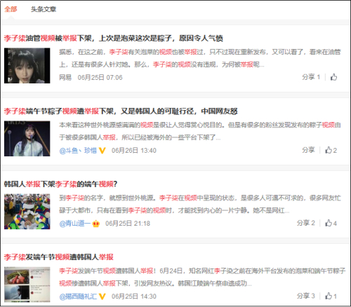有网友对此总结为,一些营销号假装韩国人去举报李子柒的内容,然后这些假装韩国人的营销号又回到国内的网站截图说是韩国人举报的,故意挑事。