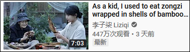 事实上,李子柒于6月26日在油管发布的端午粽子视频并没有被下架,网传泡菜视频被下架也是子虚乌有。