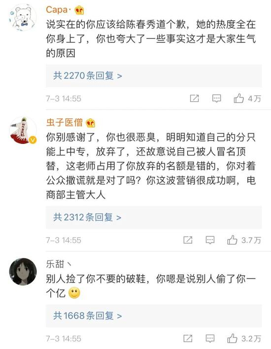 苟晶微博下的评论