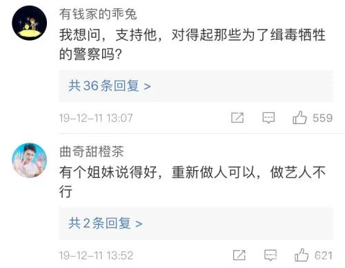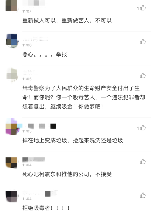 还有人呼吁,大家一定要态度强硬、抵制到底。如果再给柯震东一起机会,我们还如何面对一线的缉毒警察和牺牲的烈士家属?