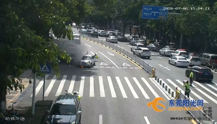 由于事发车辆正停在莞城实验小学对面马路,当时接近放学时间,情况十分紧急。于是,铁骑对小车所在道路实施临时交通管控,阻止车辆靠近,引导学校门前的过往车辆远离自燃小车,疏散人群。同时,铁骑及时疏导交通,保障消防车辆顺利到达事发地点。下午3点25分,消防车到达现场后将火情扑灭。本次事件,铁骑、消防快速处置,避免了事故发生。(记者 余文诗 梁启彬)