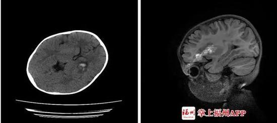 家人赶紧把小文送到医院。医生发现,这根塑料杆有筷子般粗,插入了小文的左眼。CT检查显示,异物已进入颅内,导致颅内出血。