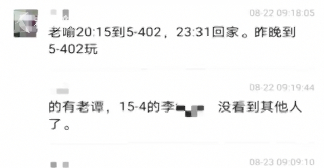 从肖先生发来的聊天记录可以看到,从2019年年初开始,每天他都会不定时和一位微信名为“海燕”的女子汇报小区几名业主的行踪,如出入小区的时间、和谁接触等等。肖先生说,这个“海燕”是他的领导,小区管理处负责人物业经理杨小姐,她强制要求保安每日汇报几名业主的行踪,自己就是因为不想再干这种违法的事情才提出离职的。