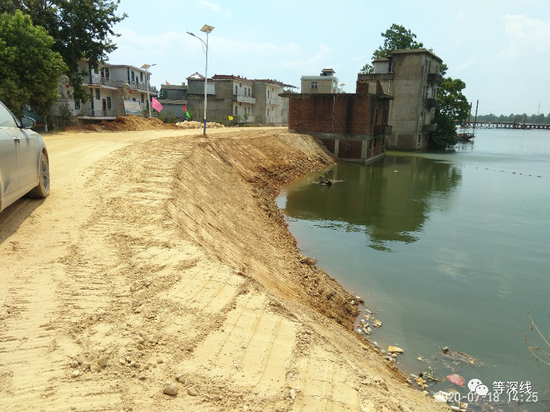 下午,记者用近3个小时的时间,驱车进入本次鄱阳县受灾最严重的昌洲乡,完整走完了该乡的36公里“绕乡路”,这条“绕乡路”建立在该乡四周的圩堤上。