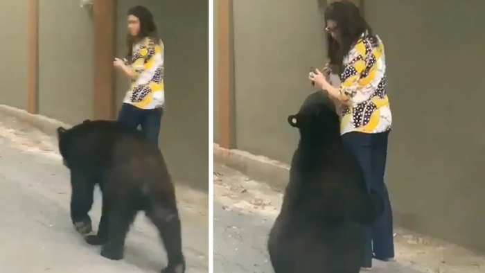 同一只熊!墨西哥黑熊在街上抱女子大腿 之前曾被拍到嗅女游客头发
