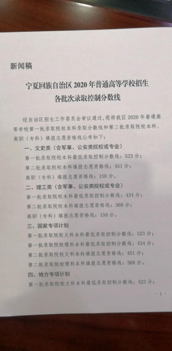 原标题:文史类一本523分,理工类一本434分!2020年宁夏高考分数线公布!