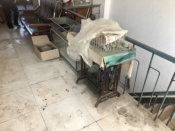 必胜马”鞋店二楼,田志彬称警方曾撬起地砖提取物证。
