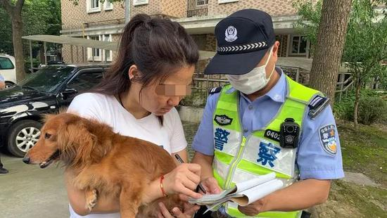 在星源佳园小区,一条体形娇小的黄色长嘴腊肠犬正在草坪溜达,没戴牵引绳。犬只主人孙女士在几米开外跟邻居闲聊。见有陌生人走近,这只腊肠犬好奇地上前闻嗅。面对民警询问,孙女士有些不好意思:“我想着就带它在楼下玩一小会儿,所以没拴狗绳。”
