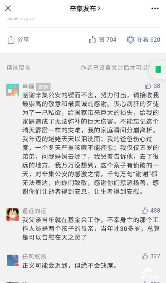 受害人的亲属也现身评论区,讲述当年母亲遇害给家庭成员造成的创伤:“丧心病狂的歹徒为了一己私欲,给国家带来巨大的损失,给我的家庭造成了无法弥补的巨大伤害。我年迈的姥姥天天以泪洗面;我的爸爸伤心过度,一个冬天严重咳嗽不能痊愈;我仅仅五岁的弟弟,问我妈妈去哪了,我哭着告诉他,去了很远的地方。我万万没想到,这个案子有侦破的一天……”