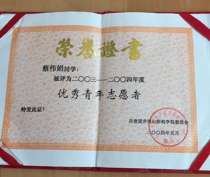 那年,19岁的蔡伟娟考入位于江西省吉安市的江西井冈山学院中文系。第一年蔡伟娟就两次获得专业奖学金,并被评为优秀青年志愿者。蔡瑞兴说,平日里,蔡伟娟每周都会和家人通话,分享她在学校的学习生活情况。