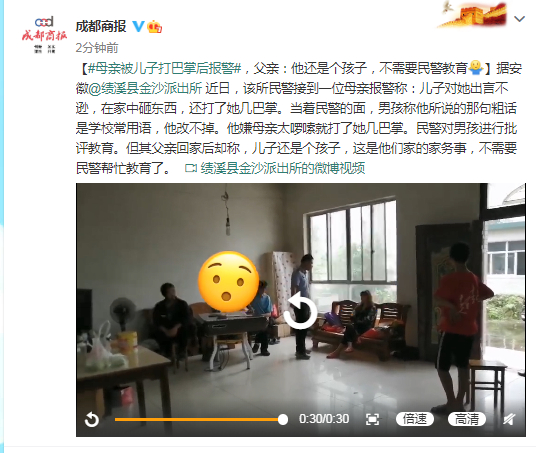 原标题:母亲被儿子打巴掌后报警,父亲:他还是个孩子,不需要民警教育