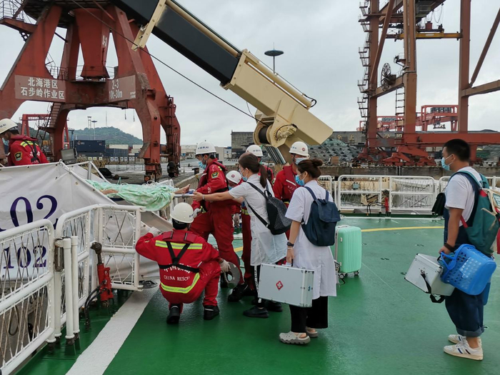 8月2日凌晨,广西北海涠洲岛一名女游客突患重病,因台风停航滞岛遇险待救,经交通运输部南海救助局救助船“南海救102”轮紧急搭起生命线,最终安全将该危急重症游客紧急转移至北海。