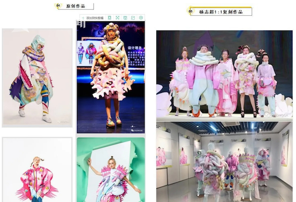 网友还放出了两组作品的服装对比照。从图片上看,两组作品确实有相似部分。