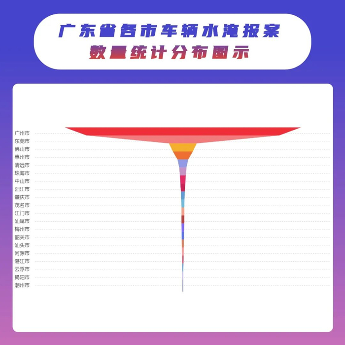 8月3日,广东省保险行业协会联合中国银保信制作的《广东省2020年车辆保险水淹风险地图情况报告》。报告分析了广东省境内车辆水淹风险较高的路段和区域。这也是广东省保险行业协会首次在全省范围内发布车辆“水淹地图”,涵盖了20个市(除深圳外),全省保险公司都可以查看。