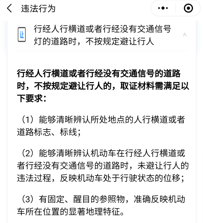 记者了解到,交管部门对于线上举报的“证据规范”也进行了说明: