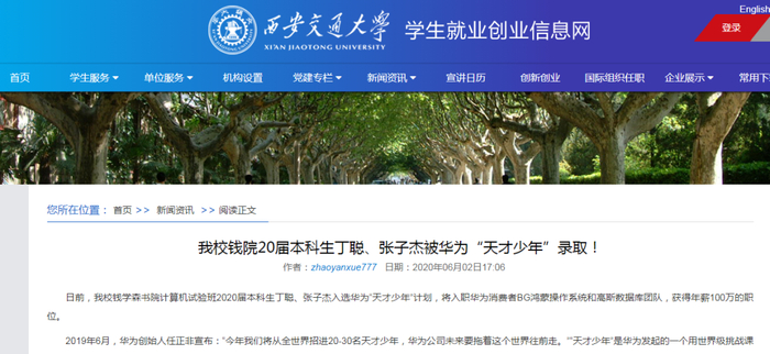 今年以来,华为至少已经招募了四位“天才少年”,分别是来自华中科技大学武汉光电国家研究中心两位博士生张霁和姚婷,以及来自西安交通大学钱学森学院的两名本科生。