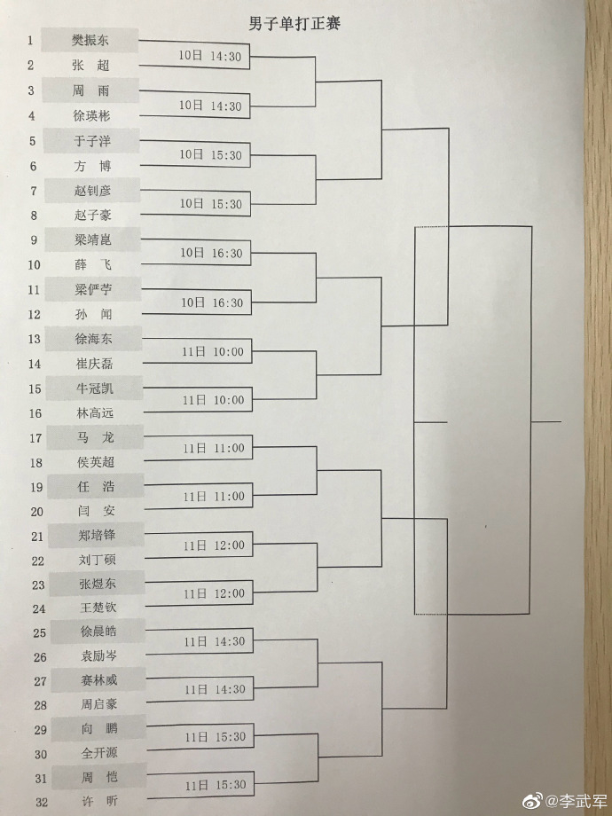 此外,据资深体育记者@李武军 消息,男、女单的资格赛以及正赛抽签也都在今天上午结束,正赛已经在今天下午陆续开始。
