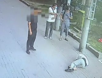 监控视频显示,老人被砸后便摔倒在地昏迷不醒。