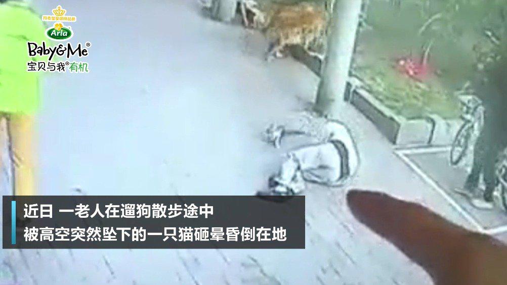 据都市零距离消息,7月12日一大早,高大爷和往常一样在路上遛狗,当他慢悠悠地走在路上时,突然,一只猫从楼上掉了下来砸中了老人的脖颈。