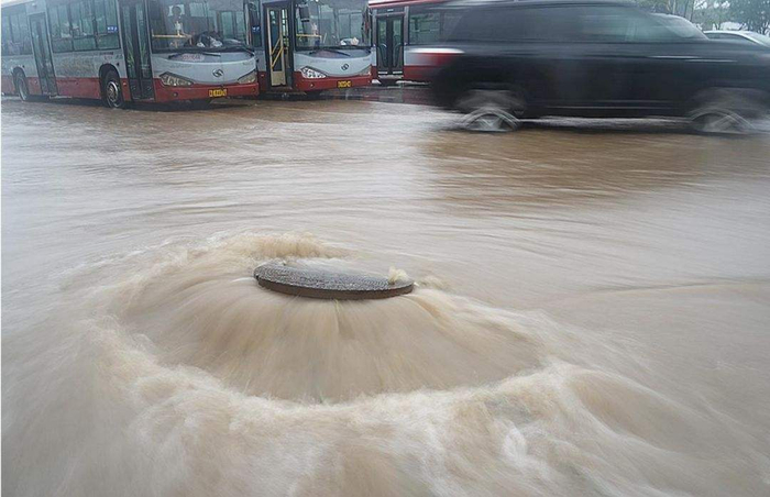 由于连续的强降雨,路面容易出现积水,泥沙、垃圾等物体被冲到水中,这个时候行走其中的路人可要千万当心。积水之上的大的悬浮物我们能够看见,可积水之下有什么东西我们就不清楚。所以不要贸然涉水。否则一旦跌入窨井或坑、洞中,将可能引起更大的不安全因素。