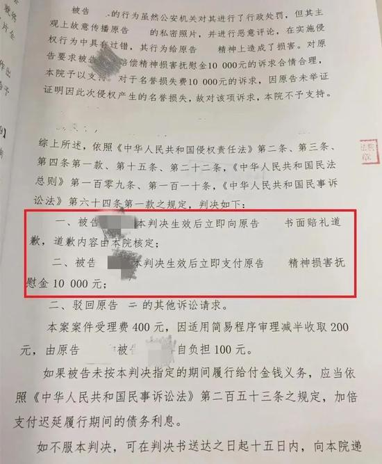 媛媛称,她对于这项行政处罚并不满意,后来她在家人鼓励下诉诸法律,重庆市渝北区人民法院于2020年4月10日立案,经过两次不公开开庭审理,法院判决被告张某向原告媛媛书面赔礼道歉并支付精神损害抚慰金1万元。