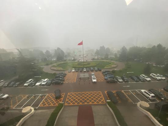 8月27日下午6点,北京市房山区、大兴区等地下起大雨,局部地区还下起小冰雹。