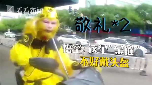 "齐天大圣"骑电动车被查头盔:有"金箍"不好戴