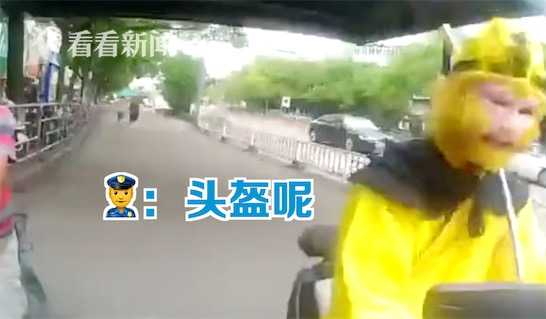 原标题:"齐天大圣"骑电动车被查头盔:有"金箍"不好戴
