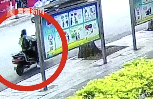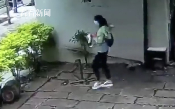 监控视频显示,当天中午12点17分左右,一名年轻女子骑车来的近华浦路春苑小区公交站台附近停下。女子脸上似乎戴着面具,她从绿化带穿过,径直走向小罗店门口。直接将正在吃东西的猫咪给抱了起来,之后带着猫骑上车离开了。