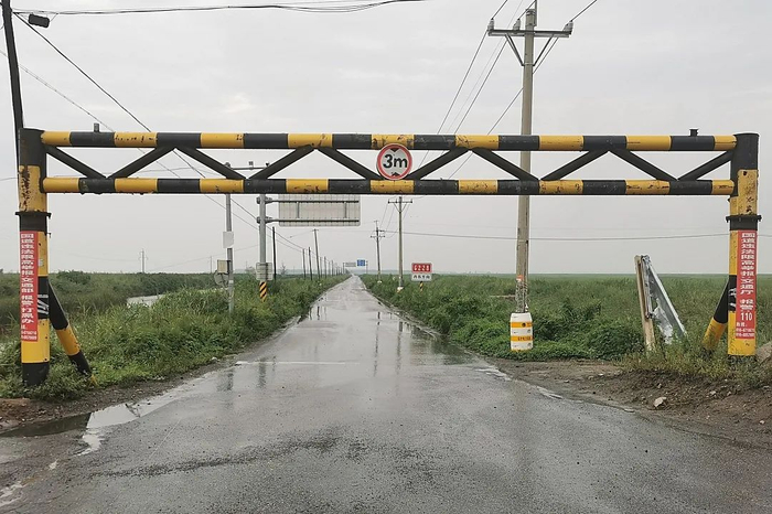 门架一侧的芦苇荡里,呈“U”字形被压出一条数百米长的泥土便道,从进出口位置推断,一段时间里曾有车辆经此便道绕过该门架,重新驶入G228。如今该便道两侧入口位置已被大石块封堵。