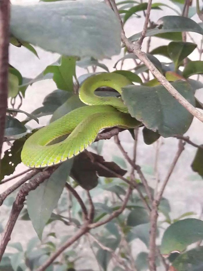 竹叶青蛇属于管牙类毒蛇,具攻击性,是福建、广东等地区的主要致伤蛇种之一。眼镜蛇头部椭圆略扁,毒牙前面有沟,颈部背面有白色眼镜状圈纹,属剧毒蛇。