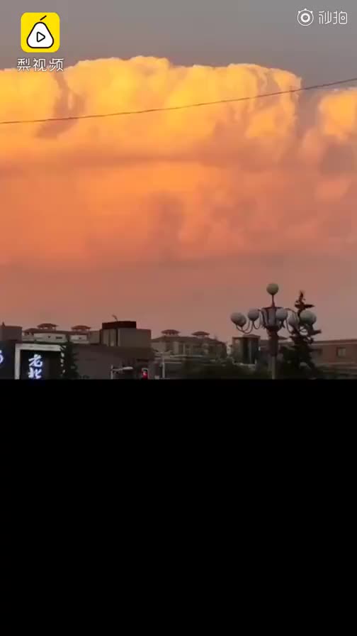 震撼!山东临沂突现大团火烧云,如一座火山平地升起