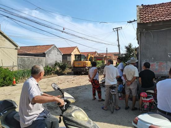 村民告诉记者,挖掘的地点原本是一个水湾,后来很多居民在水湾中倾倒垃圾,淤泥和垃圾越积越多,最后直接将此处填埋,并在此基础上修了一条路。