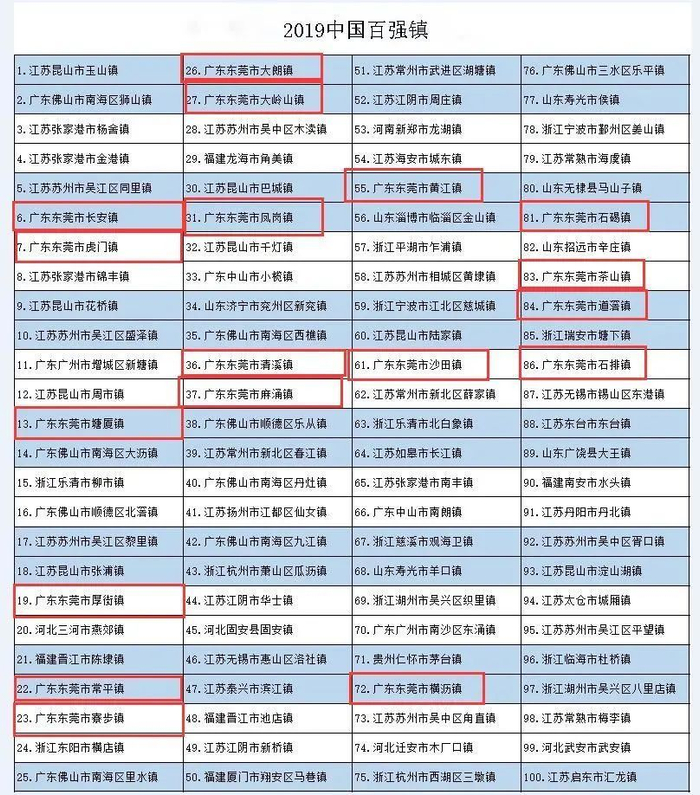 原标题:最新!东莞18个镇上榜全国“百强镇”!