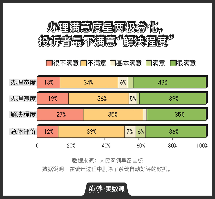 从留言者对办理结果的打分情况来看,“解决程度”是最不让人满意的部分。