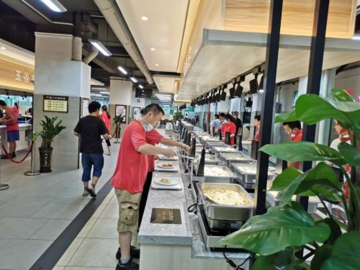 “没想到有一天还能靠刷脸吃饭,这个设置很有趣。”现场体验者不禁感叹。拿完餐盘后,来到自助选菜区,每个菜盘子旁边都有一个显示器,夹好菜后放上餐盘,显示器上立马可以显现所选菜肴的明细、重量和价格,吃多少拿多少,每一步都按照自己的饭量进行选择,实现光盘行动也是轻而易举的事了。