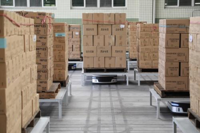 走进徐福记产品转运区域,一台台AGV(智能搬运机器人)来回在地上“忙碌”着,一边唱歌一边工作的AGV按照规划的线路有条不紊地就完成运输工作,现场没有人在看护及管理。没电了会自己充电,夜晚也可以进行无灯运作。