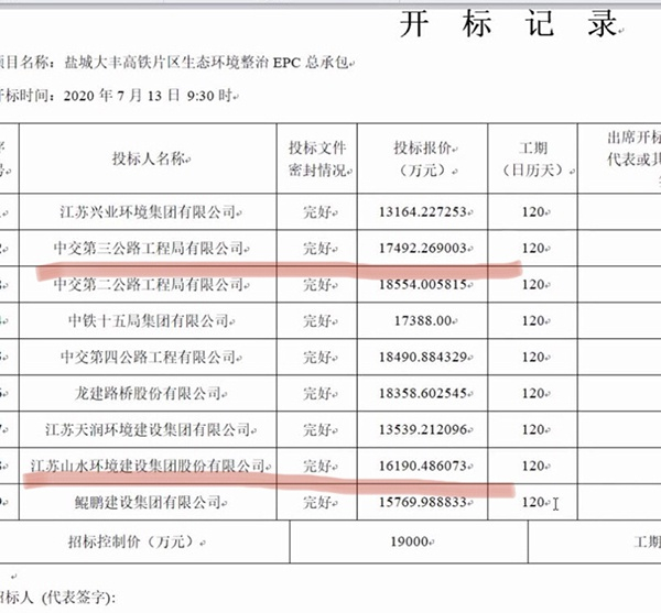 今年6月,大丰铁投公司把高铁片区生态环境整治EPC总承包项目拿出来公开招标。